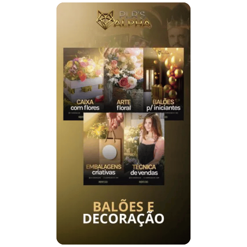 Esse combo completo oferece 5 cursos em vídeo voltados ao nicho de decoração e eventos, com foco em balões, embalagens criativas e técnicas de venda. Você recebe tudo pronto para revender, incluindo vídeo de vendas, criativos, suporte e contrato em seu nome.